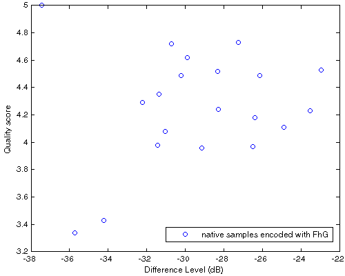 Scatter plot of 23 codecs tested during the four HA listening tests is in Fig.HA01.