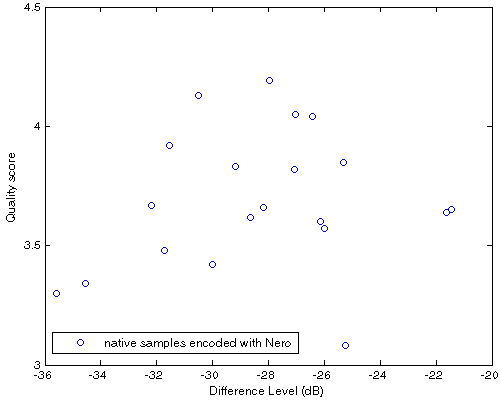 Results of this test were published on Hydrogen Audio forum (https://www.hydrogenaud.io/forums/index.php?showtopic=109716). The test was performed by one listener – Kamedo2 - using 74 sound samples.